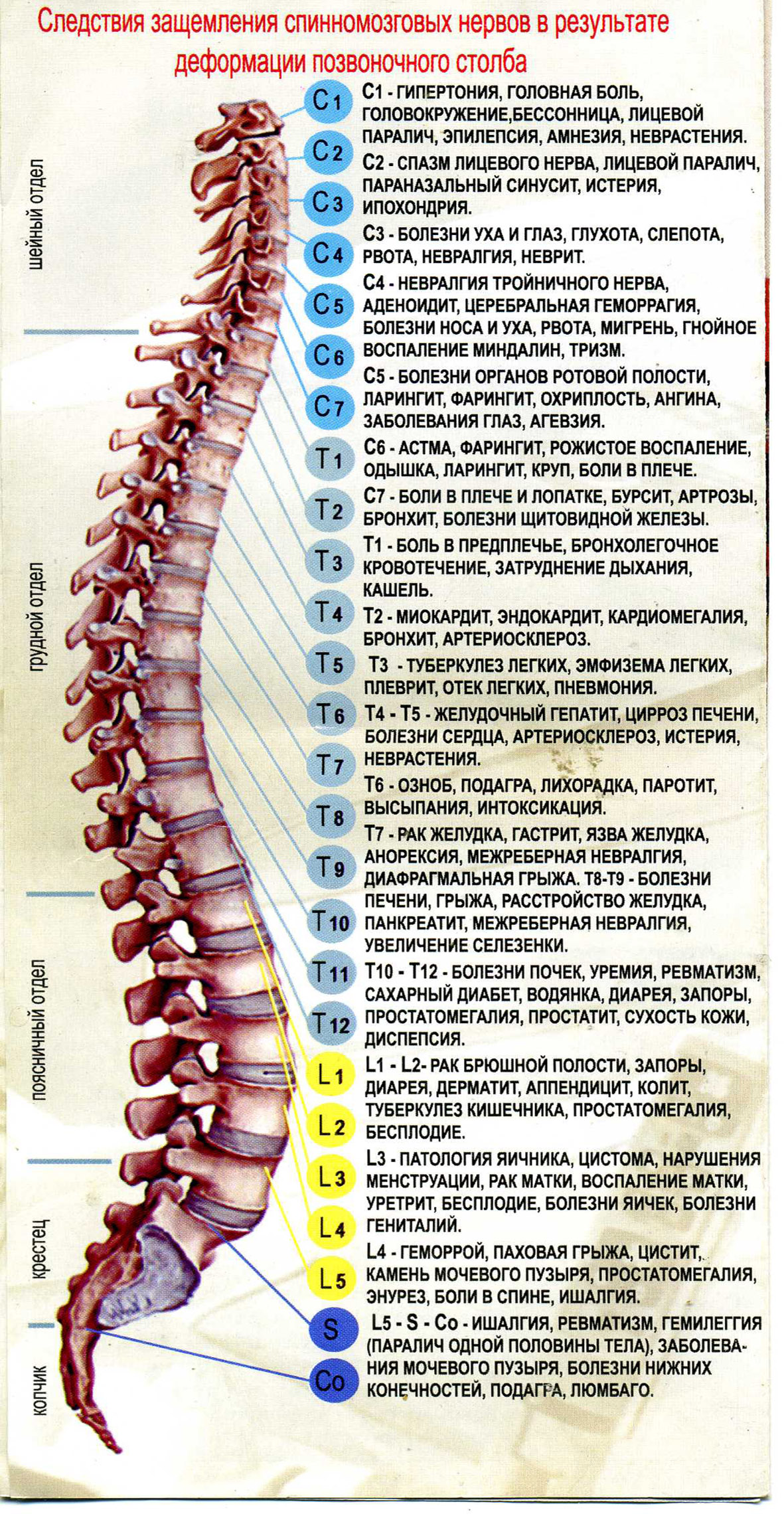 | Следствие защемления спинномозговых нервов в результате деформации позвоночного столба.